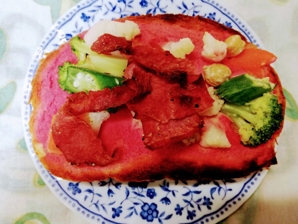 クミン香るビーツフムスとパストラミビーフ(オープンサンド)